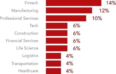 Only three sectors – fintech, manufacturing and professional services – have 10% or more business leaders rating compliance as the risk that most concerns them. It is surprising that some highly regulated sectors – in particular healthcare and life science are so dramatically off the pace.